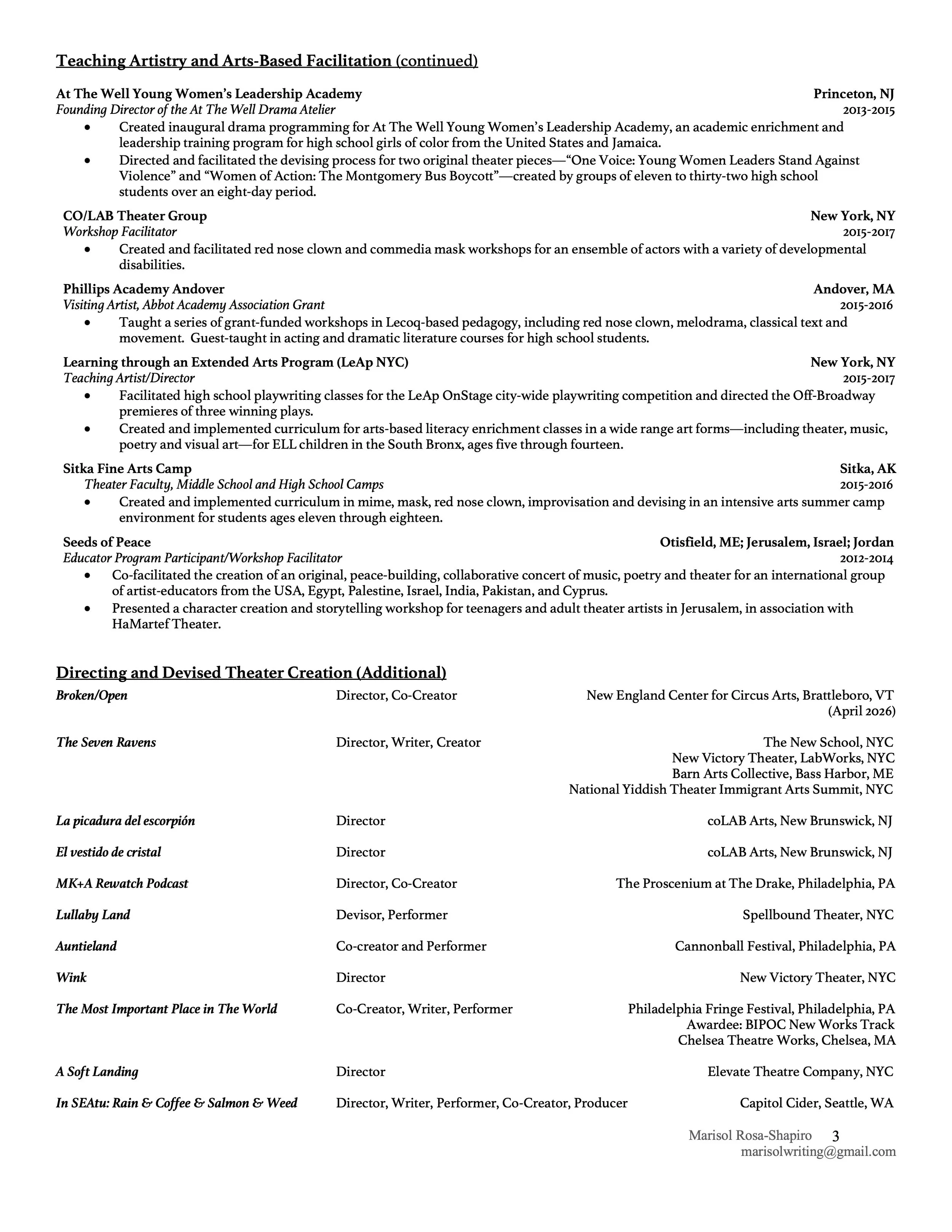 theater artist and educator